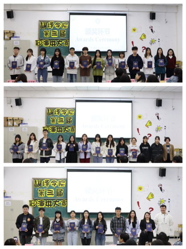 本次比赛每位选手有四分钟中文和一分钟英语的演讲时间。在演讲时,选手们自信大方地表述自己的观点,从容的表现赢得了观众热烈的掌声。经过激烈的角逐,最后来自2020级姜本富同学、2021级马艺瑞同学和2022级张亚妮同学荣获一等奖。